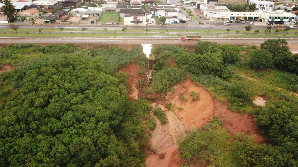 Existente há mais de 30 anos, a erosão tinha quase 20 metros de profundidade e 25 metros de largura e colocava em risco a estrutura da rodovia MT-338 e os imóveis das proximidades da Avenida Brasil. Com a obra em andamento, o buracão já não é mais visto.