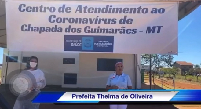 Em vídeo, a prefeita de Chapada dos Gumarães Thelma de Oliveira anunciou neste domingo(05) que o município passará a ter um centro de atendimento ao coronavírus.