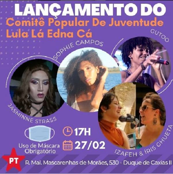 Formado por jovens integrantes ou ligados a movimentos sociais (estudantil, LGBTQIA +, negro e outros), o comitê foi lançado no início deste mês, com a publicação de um vídeo de apoio à pré-candidatura e de um perfil no Instagram (@movimentolulaeedna).