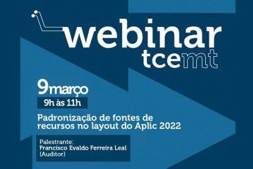 O webinar "Padronização de Fontes de Recursos no Leiaute do Aplic 2022" será realizado pela Escola Superior de Contas nesta quarta-feira (9), entre 9h e 12h, com transmissão pelo Canal da Corte de Contas no YouTube.