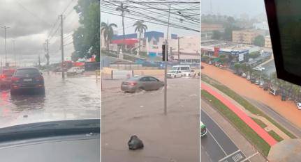 Com a chuva e ventania fortes de ontem (17), diferentes pontos de Cuiabá registraram alagamentos e diminuição no fluxo...