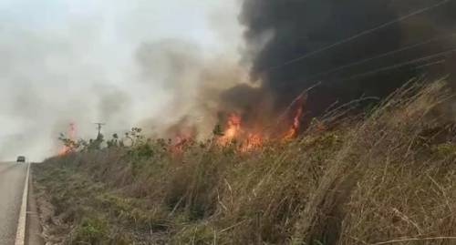 Quem passa pela MT 251 ruma à Chapada tem que ficar atento ao incêndio que está consumindo o Parque de Chapada, na regiãoo do...
