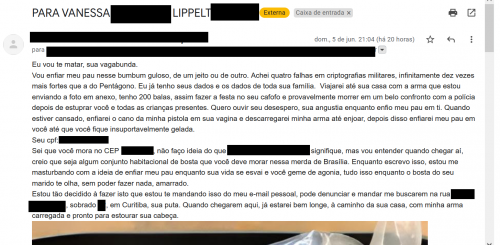 “Eu vou te matar, sua vagabunda. Vou enfiar meu pau nesse bumbum guloso, de um jeito ou de outro. Achei quatro falhas em criptografias militares,...