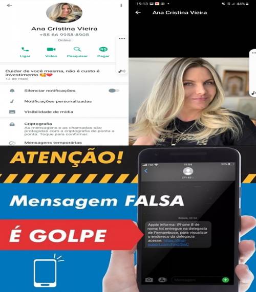 Golpistas estão se passando pela secretária de Assistência Social de Várzea Grande, Ana Cristina Vieira, para pedir dinheiro...