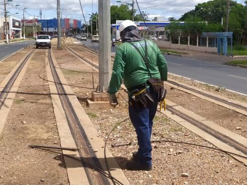 Para prevenir furtos, técnicos do Consórcio VLT Cuiabá-Várzea Grandeestiveram nesta quarta-feira (10) fazendo a retirada de...