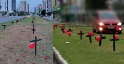 Sem mais e sem menos, um homem num carro modelo veículo Fox Vermelho destruiu uma homenagem feito no canteiro central na Avenida do CPA hoje...