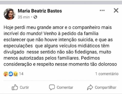 A namorada do anestesiologista encontrado morto usou as redes sociais para contestar a versão de suicídio. Segundo Maria Beatriz Bastos,...