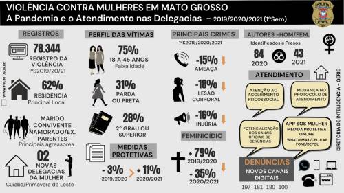 Mato Grosso apresentou queda de 12,34% nos registros de ocorrências envolvendo vítimas femininas no primeiro semestre de 2020 (24.828), comparado...