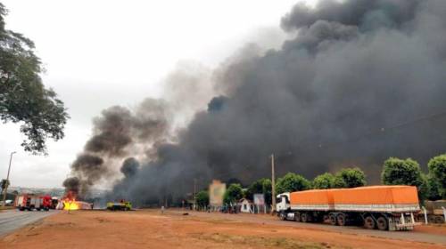 Carretas são consumidas pelo fogo na entrada de Rondonópolis