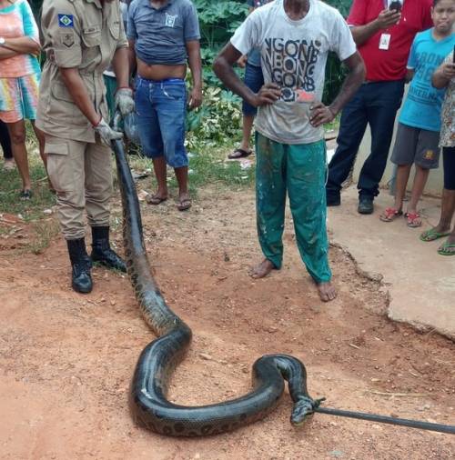 Uma cobra sucuri fos resgatada pelos bombeiros após atacar e quase engolir um cachorro no bairro Cohab Cristo Rei, em Várzea Grande. O...