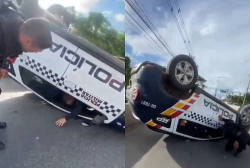Uma viatura da Polícia Militar, com dois policiais a bordo, capotou na tarde de ontem (21), na Ponte Nova, que liga Cuiabá...