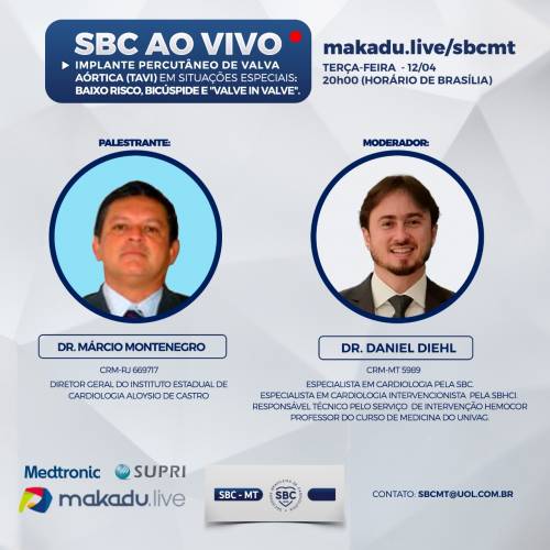 A Sociedade Brasileira de Cardiologia de Mato Grosso (SBC-MT) realiza no dia 12 de abril, a Live “Implante Percutâneo de Valva Aórtica(TAVI)...