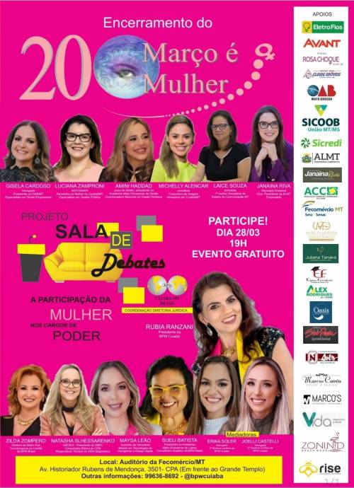 A Associação de Mulheres de Negócios e Profissionais-BPW Cuiabá, realiza nesta segunda-feira, 28 de março a 4ª...