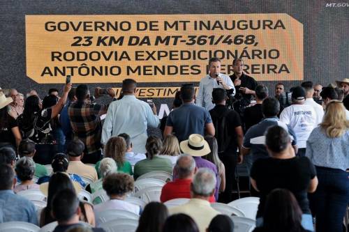 O governador Mauro Mendes se emocionou durante a cerimônia de entrega de 57 quilômetros de asfalto novo nas MTs-361 e 468, na região...