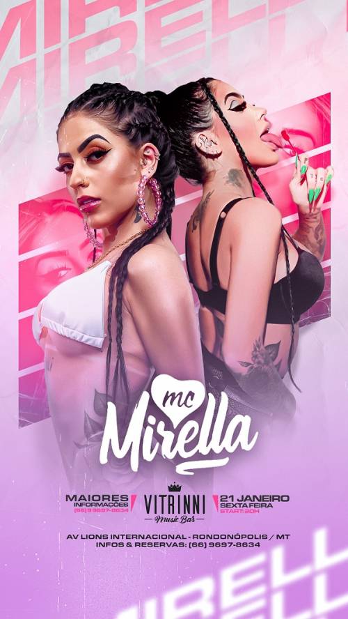 Nesta sexta-feira (21.01), a cantora de funk MC Mirella, uma das mais famosas do momento, se apresenta na Vitrinni Music Bar, maior e mais charmosa casa...