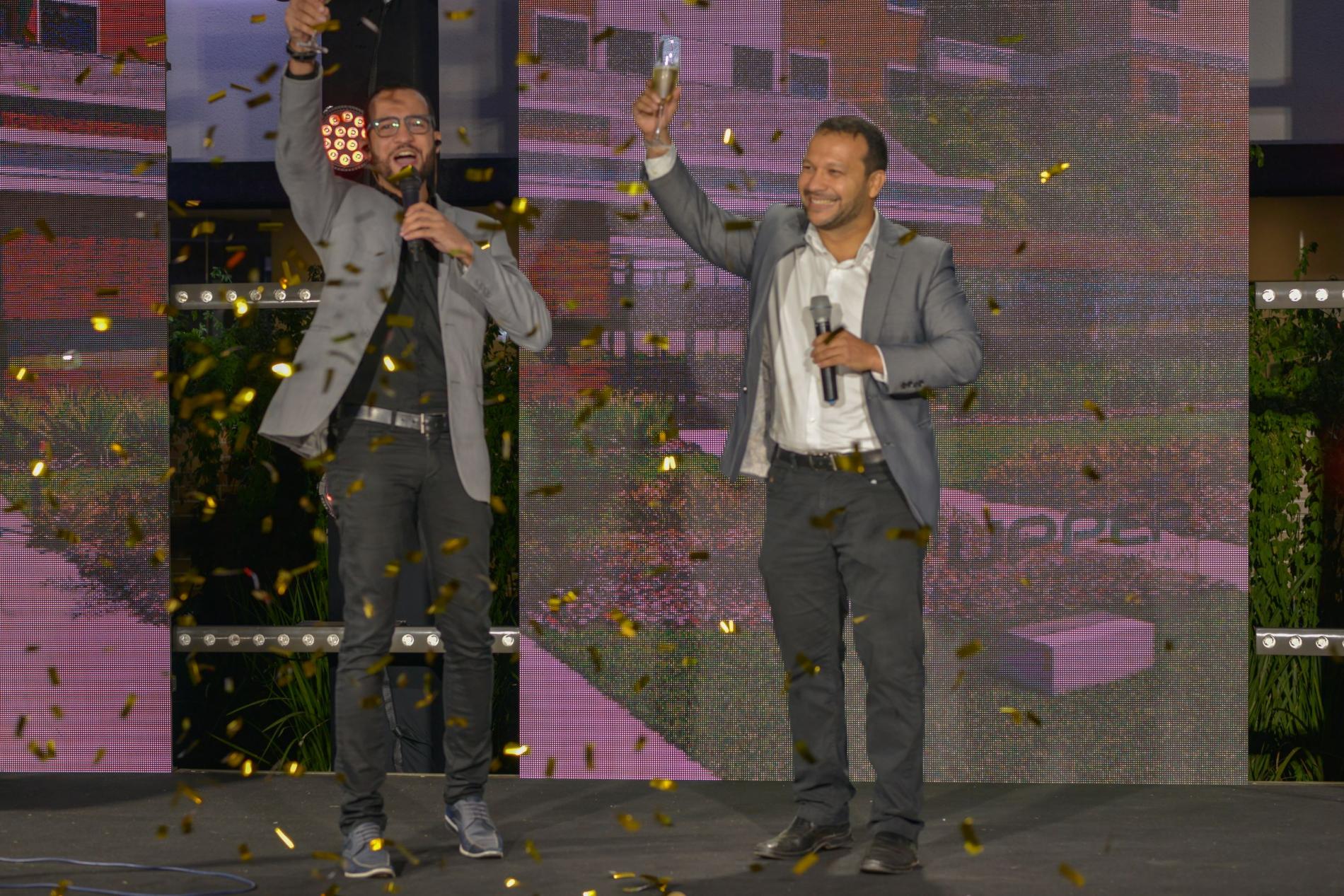Moradores curtiram um show particular montado na área de lazer e brindaram o momento com champanhe, um presente da construtora...
