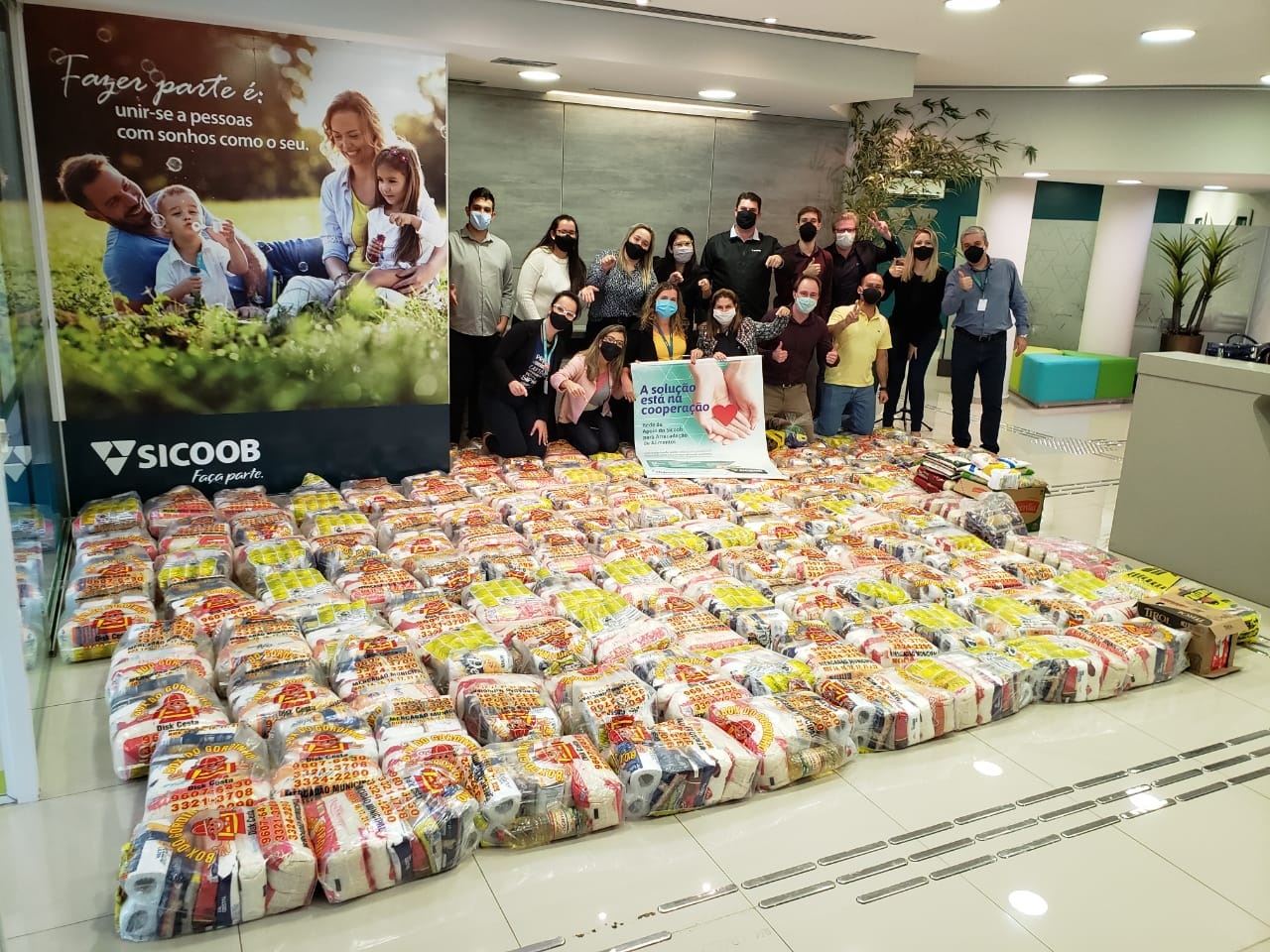 A ação recebeu ainda mais de 300kg de alimentos avulsos e 180 frascos de álcool em gel O Sicoob Integração...