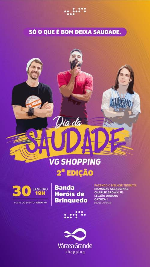 A programação musical ficará por conta da banda Heróis de Brinquedo que começa o show a partir das 19h no Pátio...